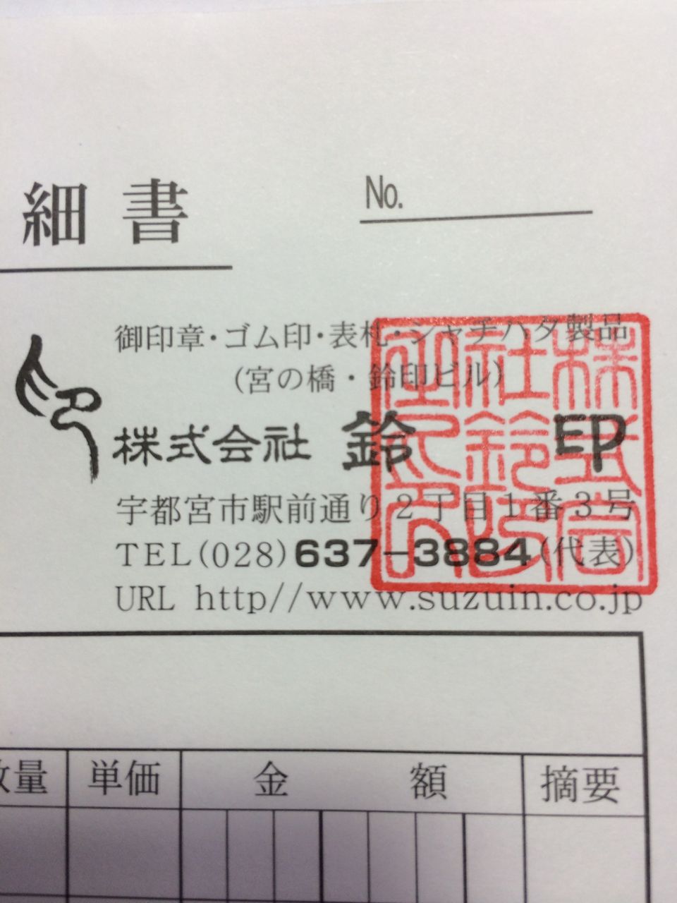 印刷の社名が新社名「株式会社鈴印」なのに、角印が旧社名「有限会社鈴木印舗」のままなんです!