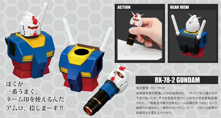 ガンダムやザクの頭部にネーム印を装着する、ネーム印スタンド