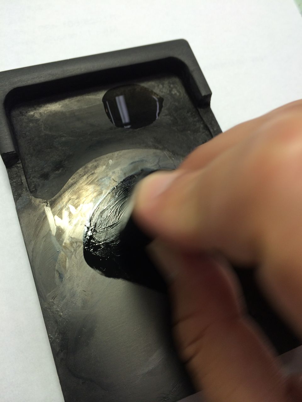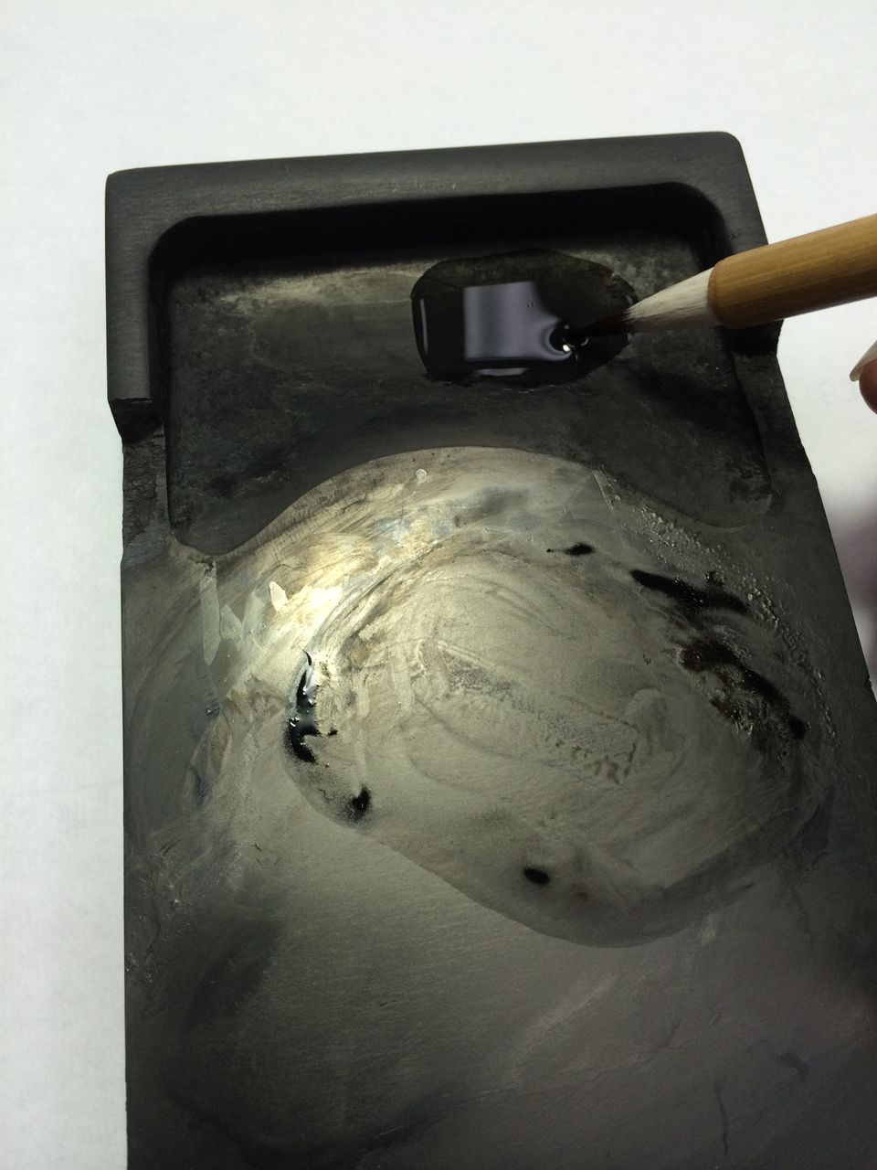 次にその水に墨をつけて、硯の陸の部分で2〜3回ネリネリします。