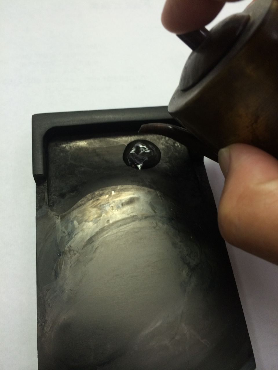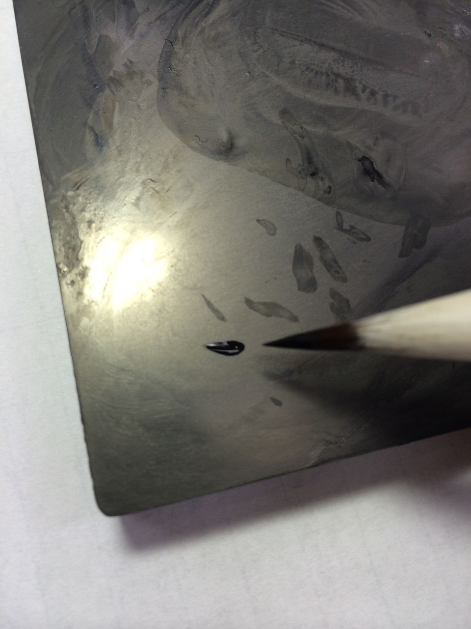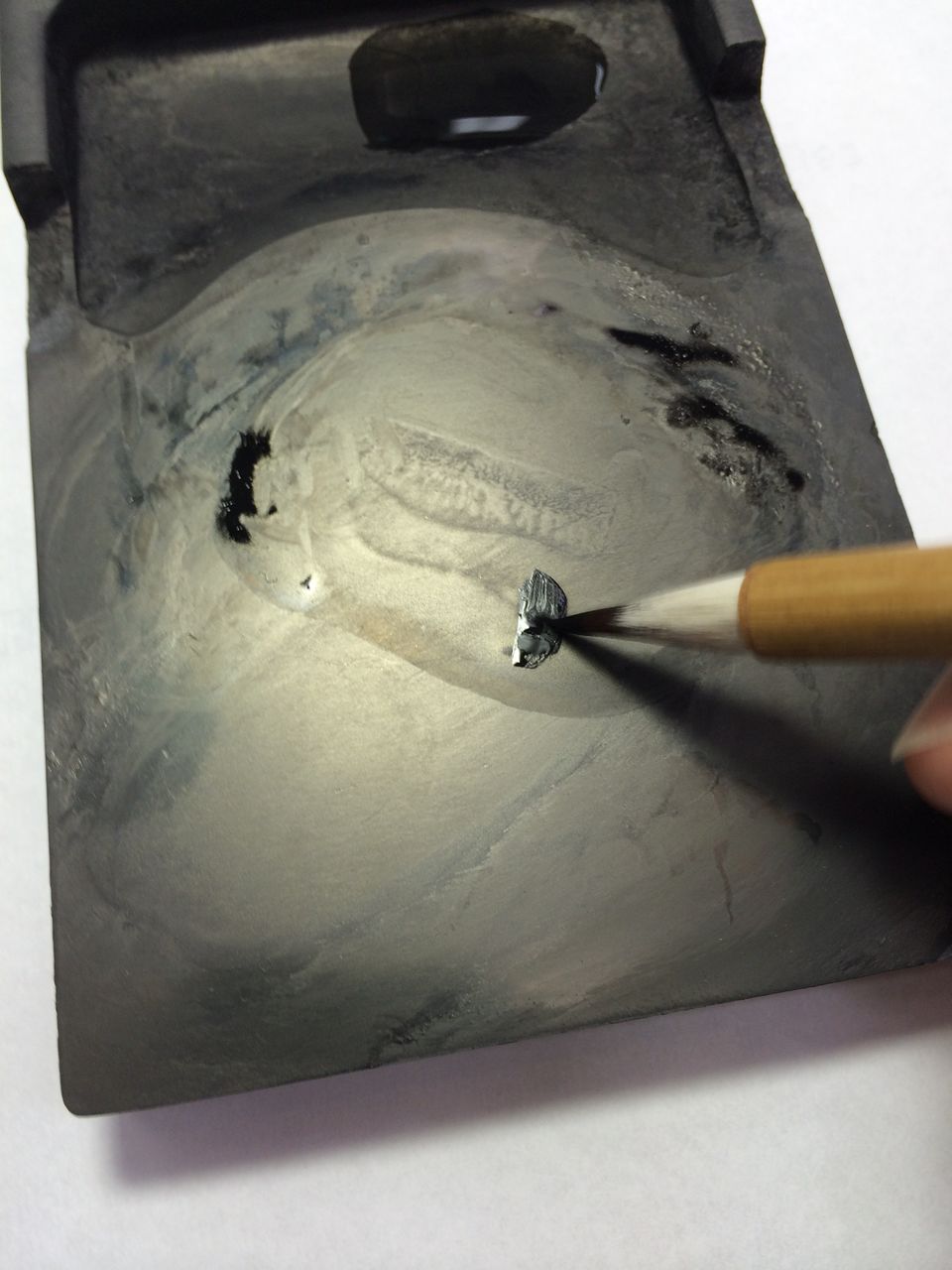 その筆の穂先で先ほど乾かした水を溶かします。