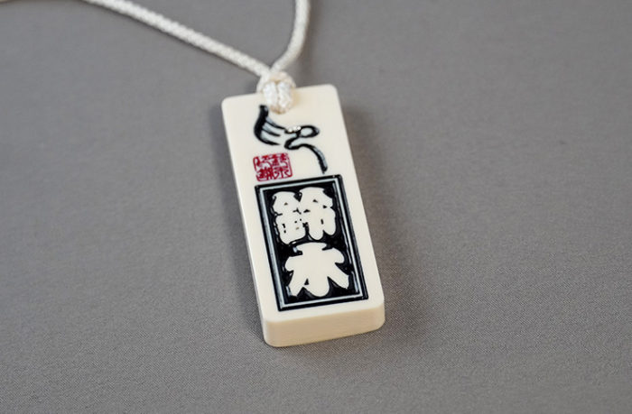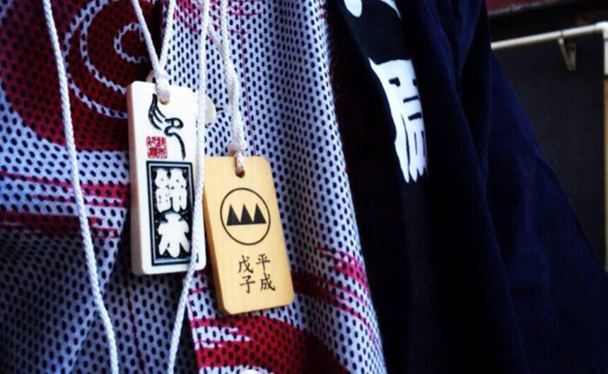 喧嘩札のルーツは江戸時代。せっかちな江戸っ子が名を名乗る手間を省くために、名前を彫った木札を首から下げたのが始まりと言われています。