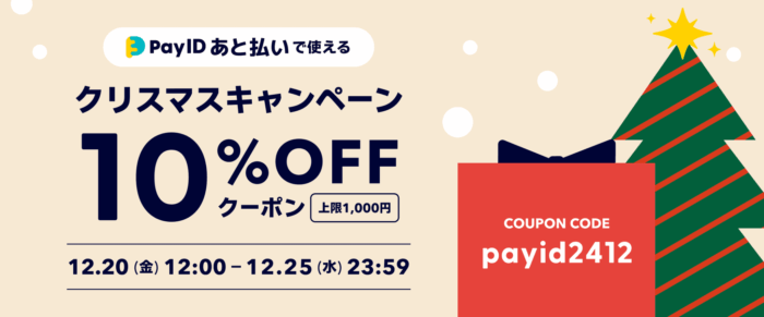 このキャンペーンでは、対象期間中に「Pay ID あと払い」をご利用いただくと、10%OFF(割引上限1,000円)のクーポンが使えます。