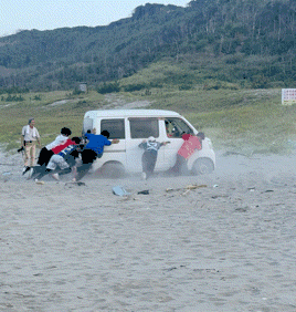 ワタクシの車が移動しないと誰も海に来られないし、みんな帰れない。