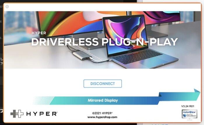 M1 MacBookを母艦に、HYPERハブ+DisplayLinkで外部ディスプレイ2枚を拡張表示。