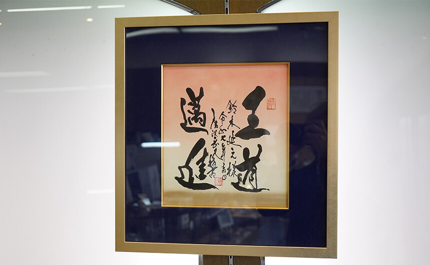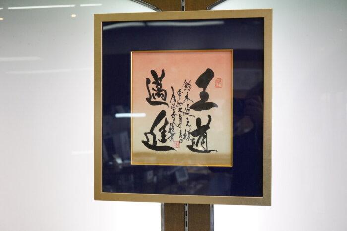書かれている言葉は「王道邁進(おうどうまいしん)」。