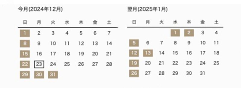年末年始の営業日程